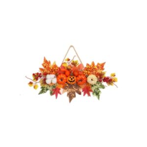 玄関用秋リース 人工カボチャ秋リース ハロウィン飾り 装飾 壁掛け式 紅葉 カボチャ ガーデニング フラワーフープ 感謝祭 お祝い ハロウィン 秋 季節飾り 玄関 壁 ドア お店 室内用 イベント パーティー グッズ (E)