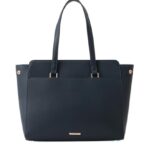 ハニーズのA4対応トートバッグ。オフィスや通勤に最適な自立型で、PCポーチ付き。黒・茶・ネイビーの3色展開。最大13インチのPCが収納可能。きれいめスタイルにもマッチするデザイン。