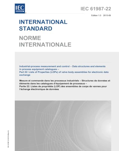 IEC 61987-22:2015は、工業プロセス測定と制御におけるプロセス機器カタログのデータ構造と要素を規定する国際標準です。