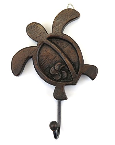 ハワイアンカービングフック(ホヌ)は、亀のモチーフが特徴のインテリア雑貨です。ハワイの伝統的なアート風にデザインされており、壁掛けやフックとして使えます。お土産やプレゼントにも最適。