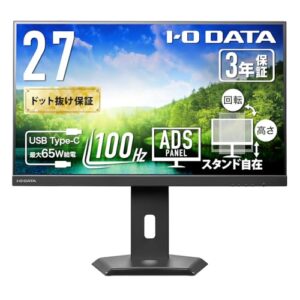 IODATA モニター 27インチ ADSパネル 非光沢 ブラック (HDMI×1/DisplayPort×1/USB-C×1/スピーカー付/高さ調整/縦横回転/ワンタッチ取付/VESA対応/土日サポート/日本メーカー) EX-C272SDB-F