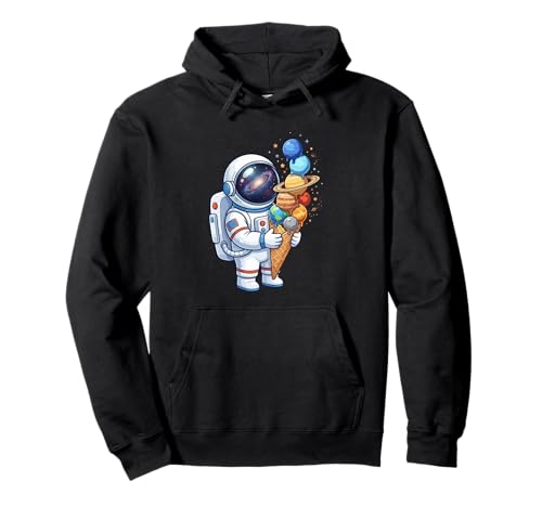 宇宙飛行士テーマのアイスクリームコーンパーカー。惑星や天文学のデザインで、太陽系の魅力を表現。おしゃれで暖かく、宇宙好きにぴったりな一品。