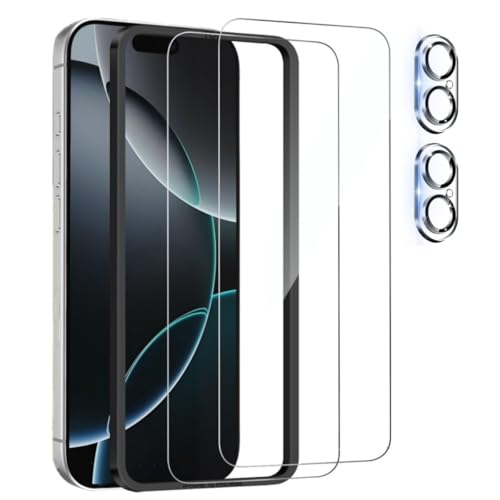 Cninyck 対応 iPhone 17 ガラスフィルム2枚とカメラフィルム2枚セット。衝撃吸収・硬度9H・飛散防止。高透過率、指紋防止、撥水撥油機能。自動吸着で簡単貼り付け、6.3インチ対応。
