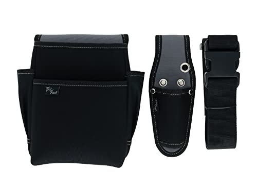 髙儀(Takagi)の電工腰袋2段は、ツールケース1丁差しとワンタッチベルトが付属。ベルト幅48mmで、耐久性に優れたブラックカラー。高い収納力と使いやすさを兼ね備えた3点セットです。