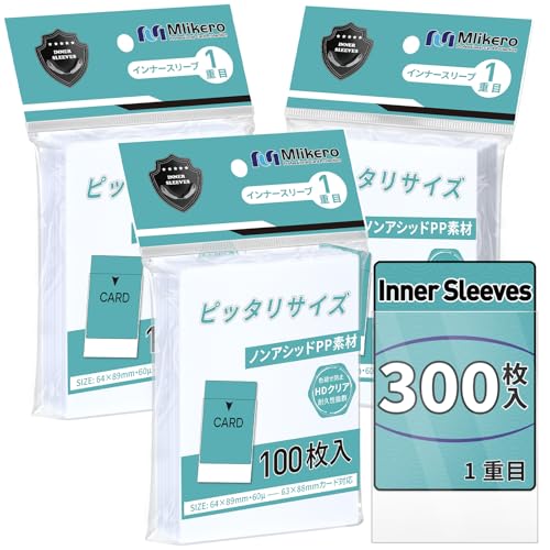 Mlikero インナースリーブは300枚入り、サイズは64×89mmでパーフェクトフィット。クリアとソフトの素材で、トレカやポケモンカードにも対応しています。カードをしっかり保護し、スムーズな取り扱いを実現します。