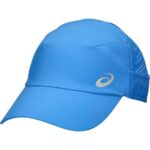 アシックスのランニングウーブンキャップ3013B090は、ユニセックスの大人用で、カラーはブルーコースト(400)。軽量で通気性に優れ、ランニング時の快適さを追求したデザインです。
