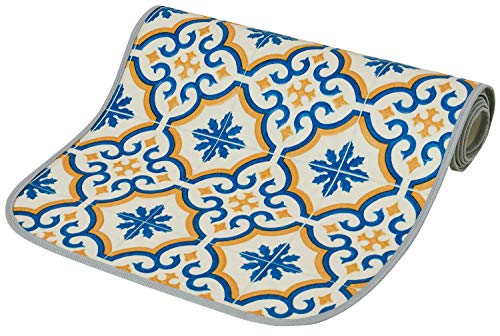 インテリアファクトリーの拭けるキッチンマット、モロッコタイルデザイン。サイズは40×240cm、滑り止め付き。汚れても簡単に拭き取れ、キッチンをスタイリッシュに演出します。