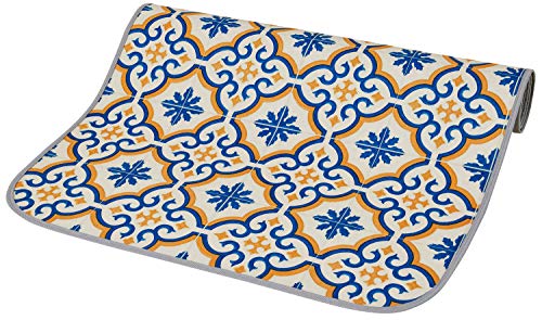 インテリアファクトリーの拭けるキッチンマット、モロッコタイルデザイン。サイズは60×240cmで、滑り止め付き。お手入れが簡単で、キッチンをおしゃれに演出します。