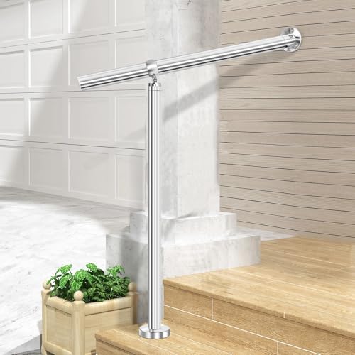BQKOZFIN 304ステンレス鋼の階段手すりは、角度調整可能で屋内外兼用。高さ90cm、直径42mm、厚さ1.2mm。滑らかなつや消し表面で取り付けも簡単なシルバー色です。幅80cm。