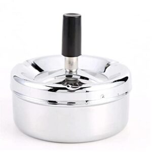 喫煙用アクセサリ ステンレス製灰皿 丸い押し下げ式 タバコ用灰皿 回転トレイ付き