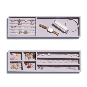 Lolalet ジュエリートレイ 2個 ジュエリー収納 化粧台・ドレッサー引き出し用 アクセサリケース ディスプレイ 仕切り付き 積み重ね可能-グレー