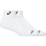 アシックスのバレーボール用サポートショートソックス。ユニセックスで、ブリリアントホワイト/パフォーマンスブラックの配色。サイズL。快適さとサポート力を兼ね備えたデザインで、ゲーム中のパフォーマンスを向上。