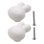 うさぎデザインのキャビネットノブ2個セット。セラミック製、真鍮ベースで耐久性抜群。引き出しやドアに最適。子供部屋やキッチンの装飾にぴったりのピンク色。