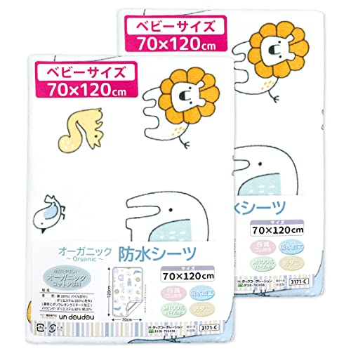 un doudou 防水おねしょシーツ 2枚組 70×120cm 吸水加工 オーガニックコットン パイル地 綿100% 北欧アニマル 四隅ゴム付き 3171-C(2) 高価買取中