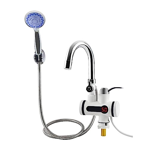 Apaeofl電気温水器 リニア小型電気温水器 LED給湯器 昼間急速加熱3秒 キッチン水温30℃~60℃ ポータブル温速加熱 電気温水器 シャワー浴室瞬間加熱 電気水栓パネル (大スクリーン,ホワイト)
