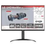 LG 32BR55U-Bは31.5インチの4K VAモニター。HDR10対応、DCI-P3 90%色域、ブルーライト低減機能。USB Type-C、HDMI×2、DisplayPort接続可能。多機能スタンドと3年無輝点保証付き。