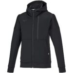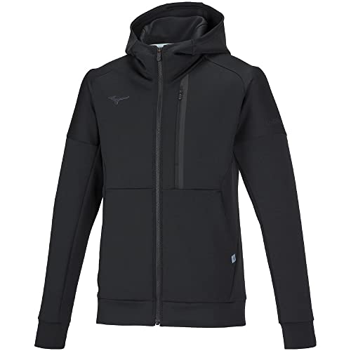トレーニングウェアのストレッチスウェットフーディ。動きやすく快適な着心地のジャージパーカー。カラーはブラック、サイズはXL。