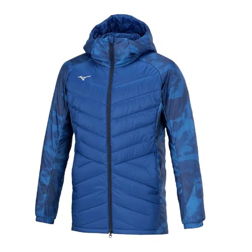 トレーニングウエア テックフィル ブレスサーモ コートはミドル丈で、撥水・吸湿発熱・保温性能を備えています。洗濯可能で防風効果もあり、カラーはクラシックブルー、サイズはMです。