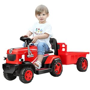 子供の電気トラクター、小トレーラーとリモコン、音楽プレーヤー、シートベルト、3-8歳の電池式のおもちゃの車(赤)
