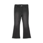 ネイビー色ののびるモンデニムパンツは、130cm対応の女の子用キッズストレッチフレアパンツです。快適な着心地とおしゃれなデザインが特徴で、普段使いやお出かけにもぴったりなジーンズです。