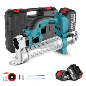 24Vコードレス電気グリースガンは8000PSIの高圧を実現。600CCの容量を持ち、2.7Ahリチウム電池で動作。注油作業に最適な電動工具キットです。
