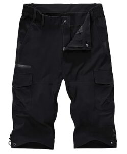 釣り ハーフパンツ メンズ 7部丈 トレッキングパンツ ドライ ゴルフ ハーフパンツ 撥水 半ズボン 薄手 登山パンツ ストレッチ サイクルパンツ トレッキングパンツ ナイロン 黒 ブラック L