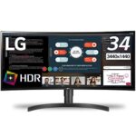 LG 34WL75C-Bは34インチの曲面ウルトラワイドモニターで、3440×1440の解像度、IPSパネル、非光沢設計、HDR対応。接続端子はHDMI×2、DisplayPort×1で、高さ調節機能も魅力です。