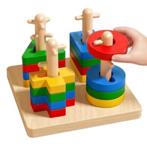 EsiFare 形合わせおもちゃ モンテッソーリ知育玩具 知育おもちゃ 男の子 女の子 赤ちゃん 型はめパズル 想像力を刺激する 手と目の協調を発揮する 視覚を高め 色認識 図形認知 早期教育 幼稚園 親子交流促進 誕生日プレゼント
