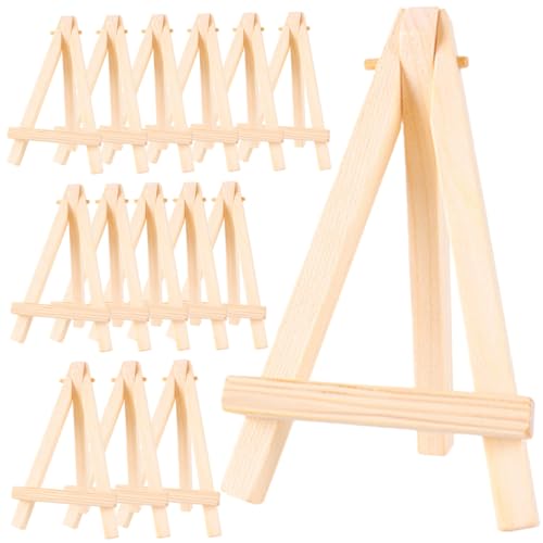 TEMPNAPの木製ミニイーゼルスタンドは15個セットで、三脚デザインにより安定性が高く、卓上で帆布額縁や写真の展示に最適です。寝室やビジネスショールームでの利用にもおすすめ。