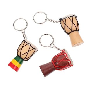 HEALLILY Drum Kehain、3ピースコンゴアフリカウッドドラムパーカッションドラムキーホルダーミニパーカッション楽器車袋ハンドバッグチャームペンダント誕生日プレゼント