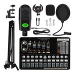 オーディオミキサー V10は、ポッドキャストやライブ配信向けのフルセット。サウンドカード、マイク、携帯電話用アクセサリーが含まれ、質の高い音を提供します。
