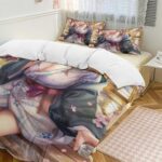 VTUBERホロライブの足湯マ-リン船長デザインの布団カバー3点セット。洗えるシングルサイズ、ボックスシーツ、敷き布団カバー、掛け布団カバー、枕カバーが含まれ、洋式和式兼用です。サイズは86″x70″です。