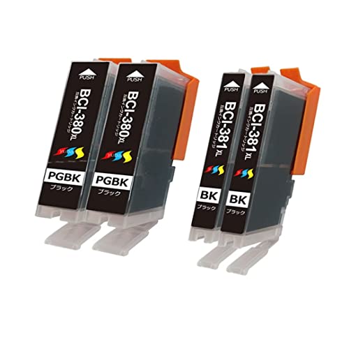 キャノン用互換インクカートリッジBCI-381BKx2 + BCI-380PGBKブラックx2のセット。対応機種はTS8430、TS8330、TS8230、TS8130など、計4個入りです。高品質な印刷を実現します。