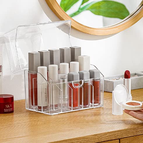 15本のクリアリップスティックや睫毛ブラシを収納できるオーガナイザーボックス。光沢のあるデザインで、ネイルポリッシュやメイクアップのギフトにも最適です。