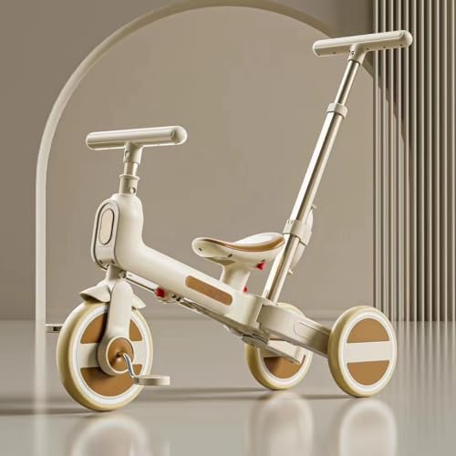 子供用三輪車とベビーカーが1つになった4in1モデル。押し棒、ペダル、コントロールバー付きで超軽量。機能満載で、子供の成長に合わせて楽しく運転できるキッズバイク。プレゼントにも最適 (ブラウン)