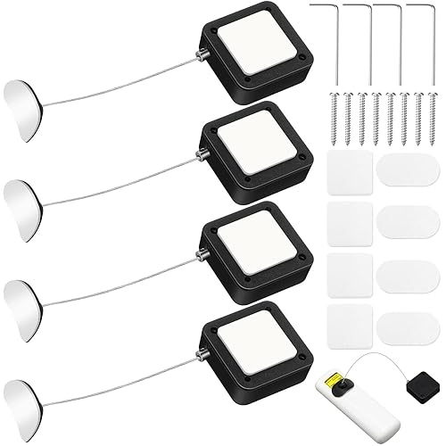 4本の6.6フィート格納式ケーブルロック。両面接着剤とネジが付属。リモコンセキュリティの紛失防止に最適。テレビやタブレットのショールーム用に最適なハードウェアケーブルです。