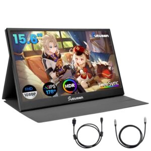 Futuzen モバイルモニター 15.6インチ 1920*1080 ポータブルモニター 非光沢IPSパネル 薄型 軽量 マグネット保護カバー付き モバイルディスプレイ USB Type-C/ミニHDMI/3.5mmオーディオ/スピーカー内蔵 HDR/FreeSync/PS4/PS5/XBOX/Switch/PC/Macなど対応 在宅勤務 リモートワーク 横表示・縦表示でき ゲーミングモニター