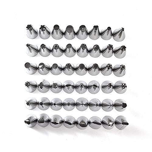 花型絞り口金48個セット。ローズ花びら型など多様なデザインが楽しめる。ステンレス製で再利用可能、ケーキやお菓子のDIYに最適な製菓道具。