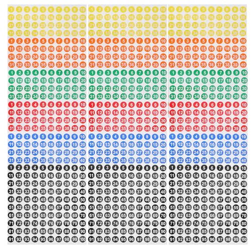 PLAFOPEの10mm丸型数字ステッカー60枚セットは、1~100の番号付きで、色分けされた粘着式ラベルです。ファイル分類や在庫管理、科学プロジェクト用の整理タグとして最適です。