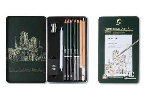 Roseelf デッサン鉛筆セットは、様々な硬さの鉛筆と木炭鉛筆、消しゴム、ブレンディングスタンプが含まれ、初心者からプロのアーティスト向けの理想的な画材です。