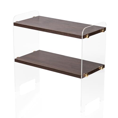 Baskiss 卓上収納ラックは、2段のデスクシェルフで、小物や本を整理整頓できます。アクリル製と木製のコンビ、ダークブラウンのスタイリッシュなデザイン。キッチンやオフィスでも活躍します。