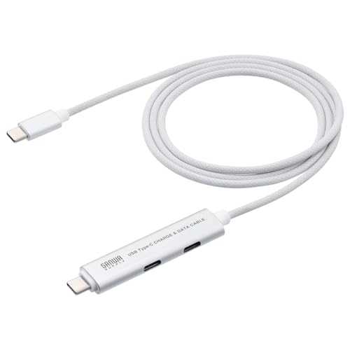サンワダイレクトのUSB-Cハブ付きケーブルです。PD100Wで急速充電対応、USB3.2 Gen1でデータ転送速度は5Gbps。持ち運びに便利な1mの長さ、シルバーのデザインです。