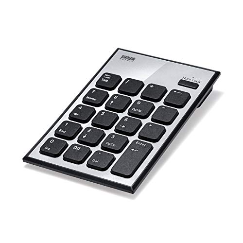 サンワダイレクトのBluetooth対応薄型テンキー(400-NT003)は、小型デザインでパンタグラフ方式を採用。Windows専用で、電池式で手軽に使用できます。