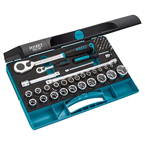 HAZET 953HPは、1/4インチサイズの47点工具セットで、クロムバナジウム鋼製です。HiPer細目90枚ギア、4度ラチェット角度搭載。六角/PZ/PH/トルクス対応、DIYや自動車整備に最適。ドイツ製のSmartCase収納。