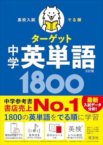 『高校入試 でる順ターゲット 中学英単語1800 五訂版』は、受験に必要な英単語を効率的に学べるアプリ対応教材。基本的な単語から応用力を養い、入試対策に最適です。