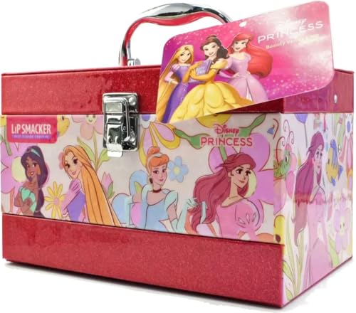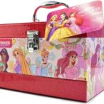 ディズニープリンセスのピンクの四角いコスメボックス。子供用メイクセットで、ネイルやリップが含まれています。小学生女の子への誕生日プレゼントに最適なおしゃれなおもちゃ。
