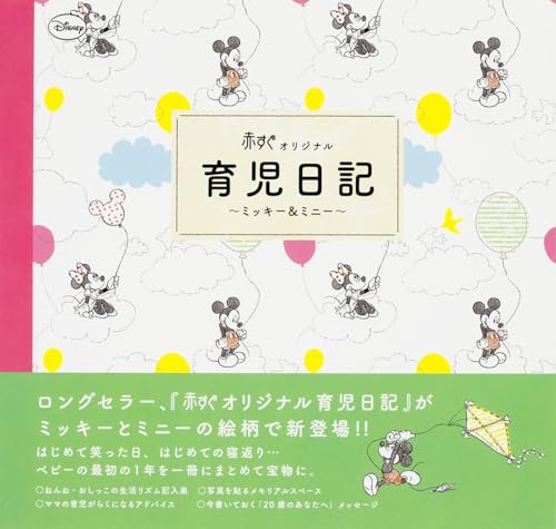 赤すぐオリジナル育児日記 ~ミッキー&ミニー~は、可愛いディズニーデザインの育児記録帳です。成長の思い出を美しく残すためのページが豊富にあり、親子の絆を深めるサポートをします。