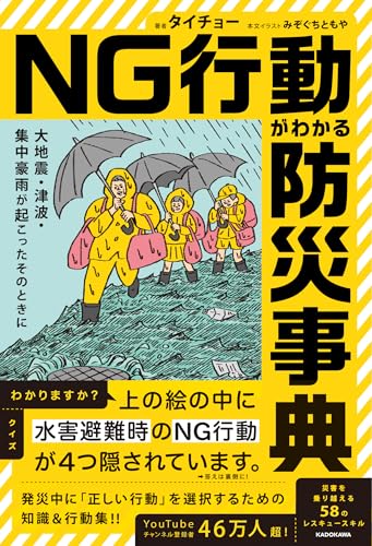 「大地震・津波・集中豪雨時のNG行動が分かる防災事典」は、災害時の適切な行動を具体的に解説。危険な行動例や避けるべき対策も紹介し、身を守るための知識を提供します。