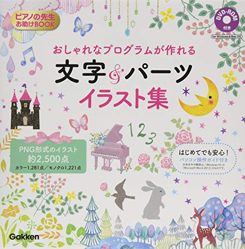 「ピアノの先生お助けBOOK」は、おしゃれなプログラム作成をサポートする文字やパーツのイラスト集です。DVD-ROM付きで、簡単にデザインが楽しめます。音楽教室や発表会に最適な一冊です。