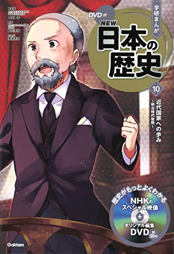 学研まんが NEW日本の歴史 10 近代国家への歩み ~明治時代後期では、明治時代の政治、経済、文化の発展を描いた作品です。DVDが付属し、視覚的に学びやすくなっています。歴史の重要な出来事や人物をわかりやすく紹介しています。
